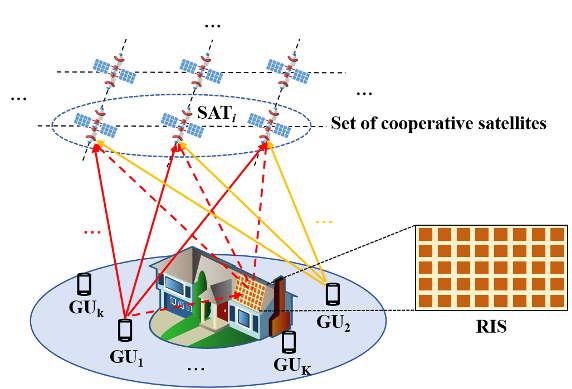 针对上述挑战,中国科研实验室上海高等研究院(以下简称“PA真人视讯”)智能信息中心下一代移动通信网络团队,面向星地上行传输场景的能量效率优化问题,提出了一种智能超表面辅助的多星协作接收方案,实现了在复杂用户干扰以及终端能量受限条件下的多用户总能量效率提升。相关成果以 Reconfigurable Intelligent Surface-Aided Cooperative Multi-Satellite System for Energy-Efficient Multi-User Uplink Transmission 为题,发表于无线通信领域旗舰期刊 IEEE Transactions on Wireless Communications。